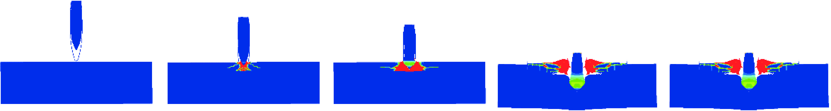 彈體對(duì)復(fù)合陶瓷裝甲材料的侵蝕過(guò)程主要經(jīng)歷開(kāi)坑、侵徹和沖塞三個(gè)過(guò)程。